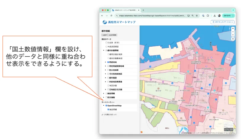国土数値情報(地価、人口、都市計画、災害リスク情報、交通インフラ、公共施設等の国土に関する基礎的な情報を全国単位のGISデータとして整備)は、2001年から一般ユーザー向けにデータを提供し、信頼性の担保された重要な社会インフラとして機能しているところです。
