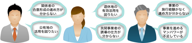 立案から事業計画の策定、関係者間の段階的な合意形成等のコーディネートの実施や民間事業者・地方公共団体・