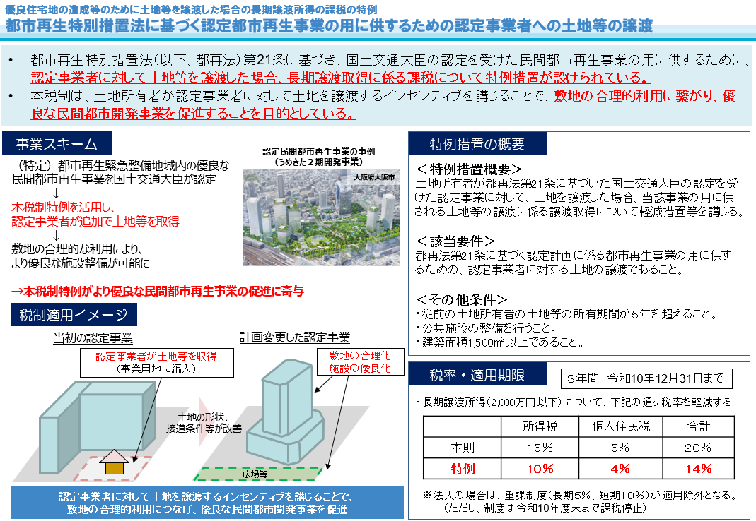 優良な都市開発を促進するため、次のような税制支援を行っています。