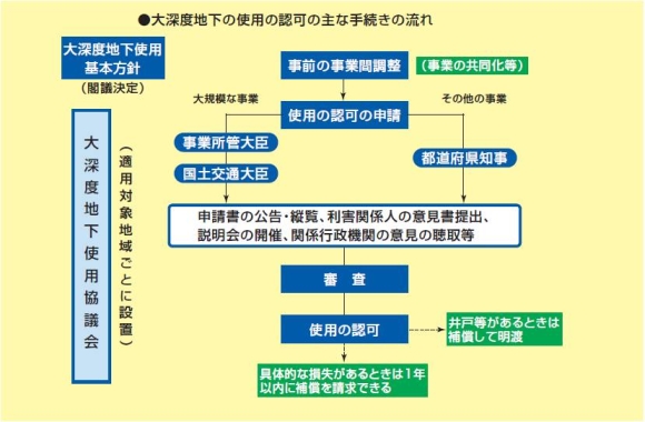 大深度地下の使用の認可の主な手続きの流れは下図に示すようになっています。