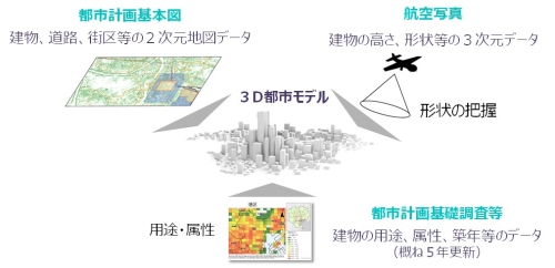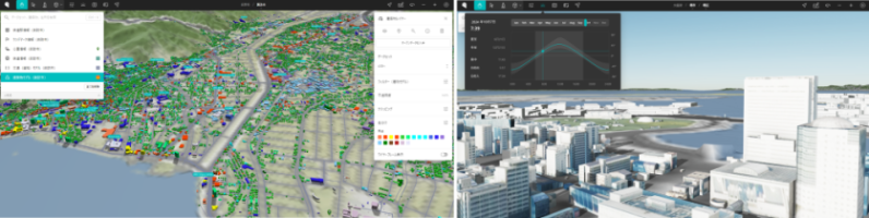 土地利用、都市計画、災害リスク等の様々なデータを3D都市モデルに統合し、
