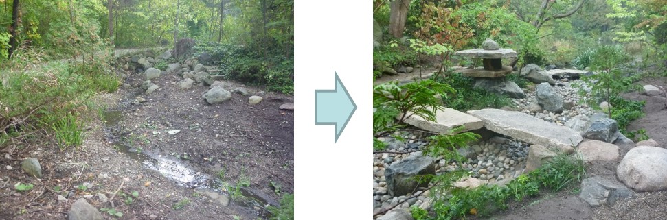 ■ 流れに石橋、滝口、植栽を整備