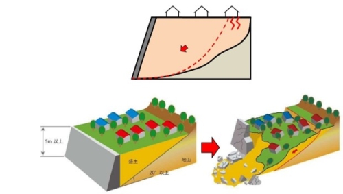 2004年(平成16年)新潟県中越地震や2011年(平成23年)東北地方太平洋沖地震等において、谷や沢を埋めた造成宅地又は傾斜地盤上に腹付けした大規模な造成宅地において、盛土内部を滑り面とする盛土の大部分の変動や、盛土と地山との境界面等における盛土全体の地滑り的変動(滑動崩落)が生じ、造成宅地における崖崩れ又は土砂の流出による被害が発生しました。