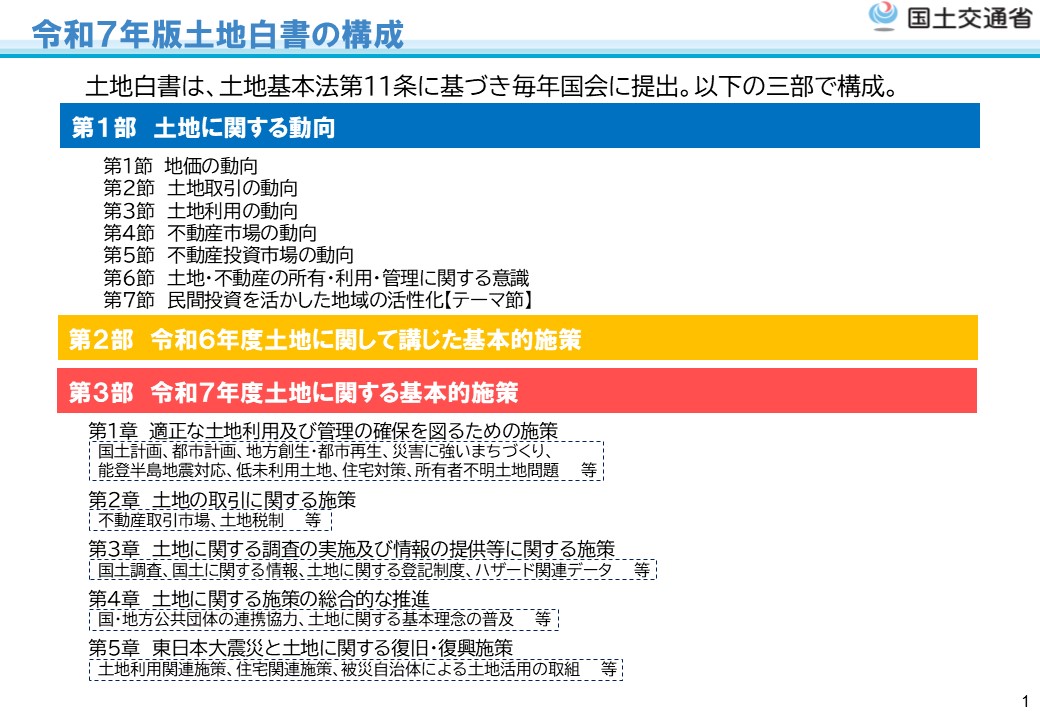土地白書は、第1部から第3部までの構成となっています。