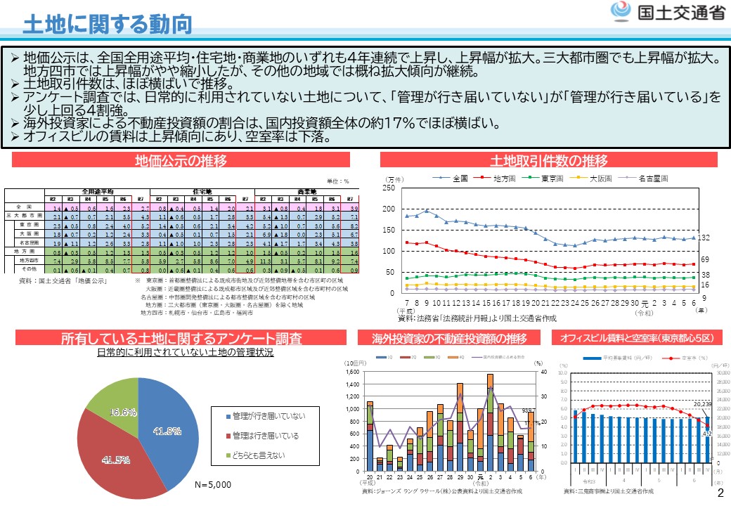 “White Paper on Land” is a report on trends and basic policies on land informed to the Diet by the government each year, based on Article 11 of Basic Act for Land.